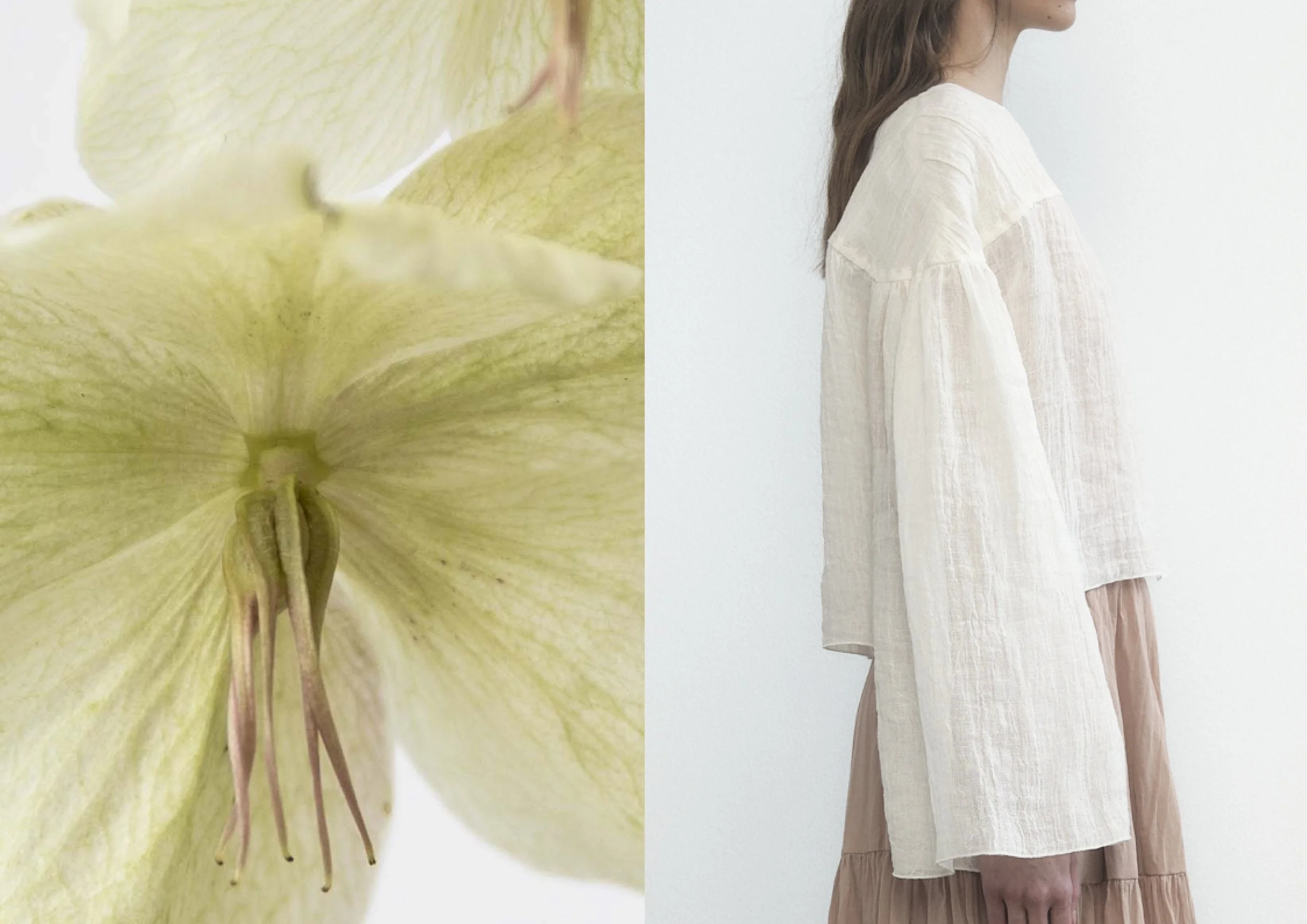 You will find new shapes alongside familiar ones. The Oversized Shirt Dress brings a sense of ease and versatility, while the Petal Dress — crafted in the softest transparent silk — captures the spirit of the collection entirely. Returning pieces, such as the Barrel Skirt and Trousers, Ananbelle Dress and Overall are reimagined with softer proportions.